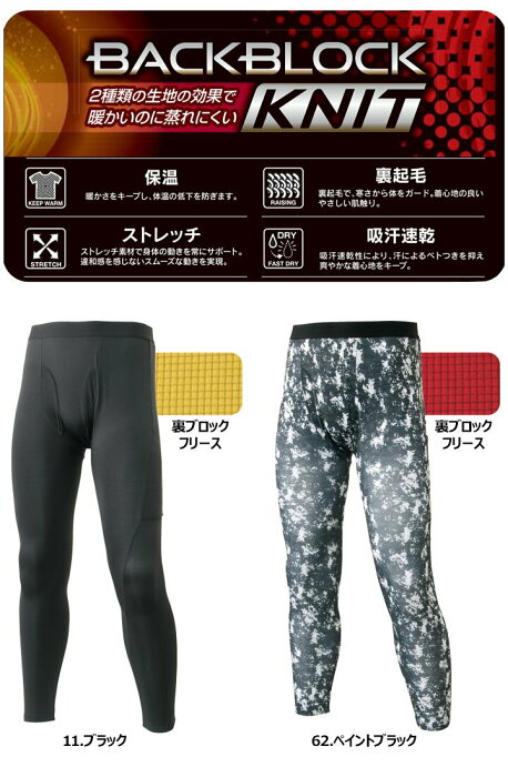 【送料無料】防寒インナー パンツ アタックベース 478-15 裏ブロックフリース インナーウェア 保温 裏起毛 ストレッチ 吸汗速乾 作業着 ユニフォーム 作業服 防寒服 防寒着