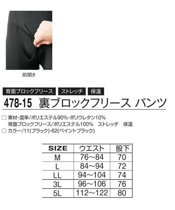 ■アタックベース 478-15 裏ブロックフリース パンツ ■素材:ポリエステル90%、ポリウレタン10% 背面ブロックフリース:ポリエステル100% ■仕様:背面ブロックフリース、ストレッチ、保温 モニター環境により画像の色と現物の色が多少違って見えます。
