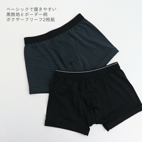 ジュニア向けボクサーパンツ ベーシックな履きやすいボクサーブリーフ 黒地とボーダーの2枚組 身生地にはストレッチ性のあるエステルベア天竺を使用 薄手でさらっとした、春夏にぴったりな着心地です。