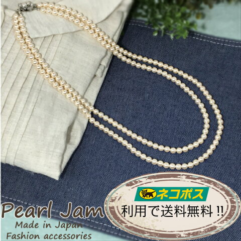【ネコポス送料無料】訳あり 貝キスカ パール 2連セミロング ネックレス 58cm/66cm パールサイズ:7mm 日本製【パールジャム】ジュエリー アクセサリー イヤリング ピアス 真珠  貝パール レディース プチプラ フォーマル 結婚式 2次会 パーティー 入卒