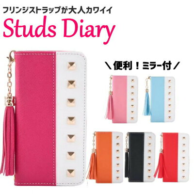 商品内容 スタッズ付きバイカラー手帳ケース×1液晶保護フィルム×1フリンジストラップ×1★